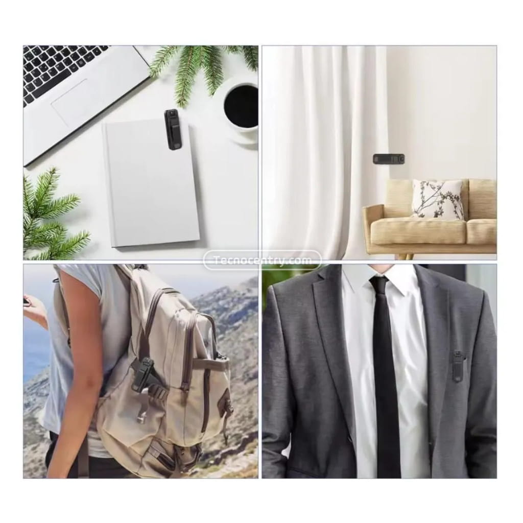 Su clip trasero de sujeción está diseñado para engancharse firmemente a la ropa, chaleco o cinturón, manteniendo las manos libres mientras grabas. Además, incorpora micrófono integrado para capturar audio en sincronía con el video, ideal para respaldar situaciones o como evidencia.