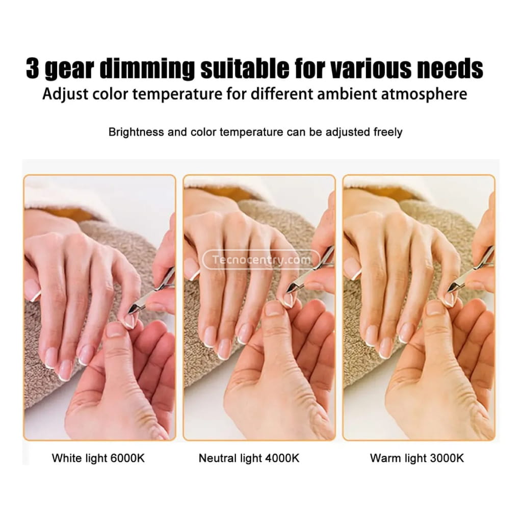 Equipada con tres tonalidades de luz (blanca, cálida y neutra), se adapta a tus necesidades en segundos: ideal para leer, estudiar, trabajar, hacer uñas, limpiezas faciales, sesiones de maquillaje o simplemente crear un ambiente acogedor en tu hogar.