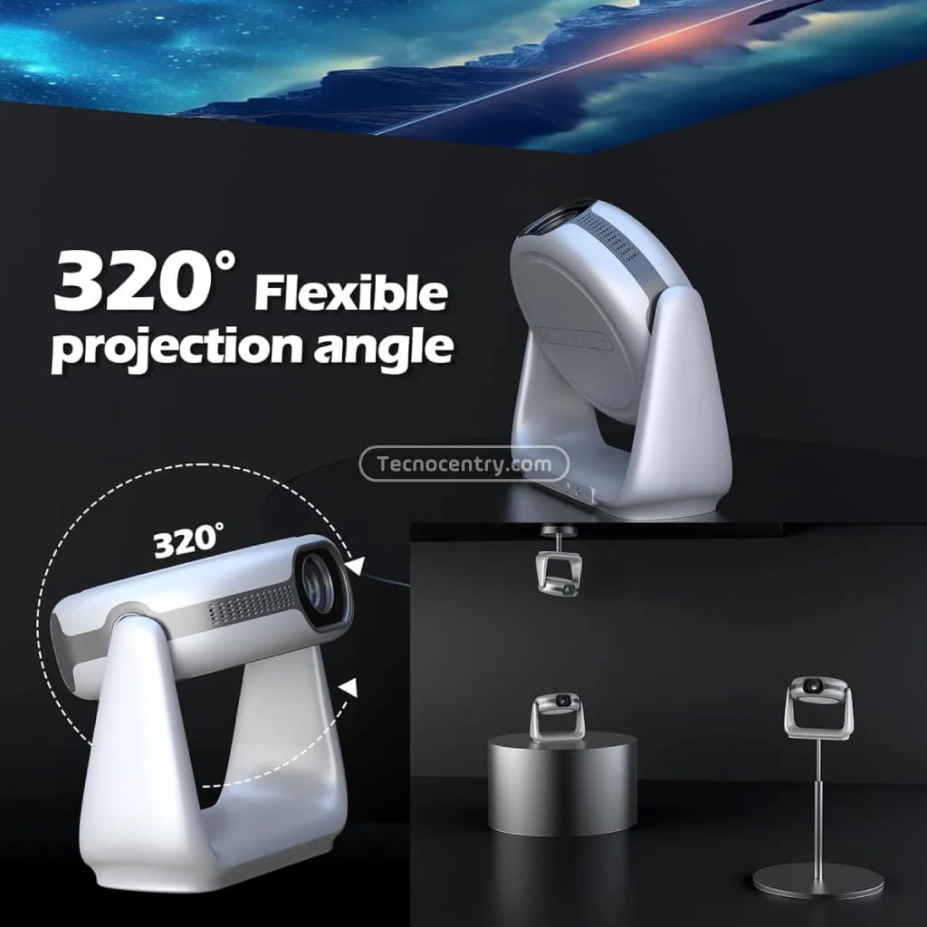 • Ángulo flexible de 270°: Disfruta de la proyección desde las paredes hasta el techo