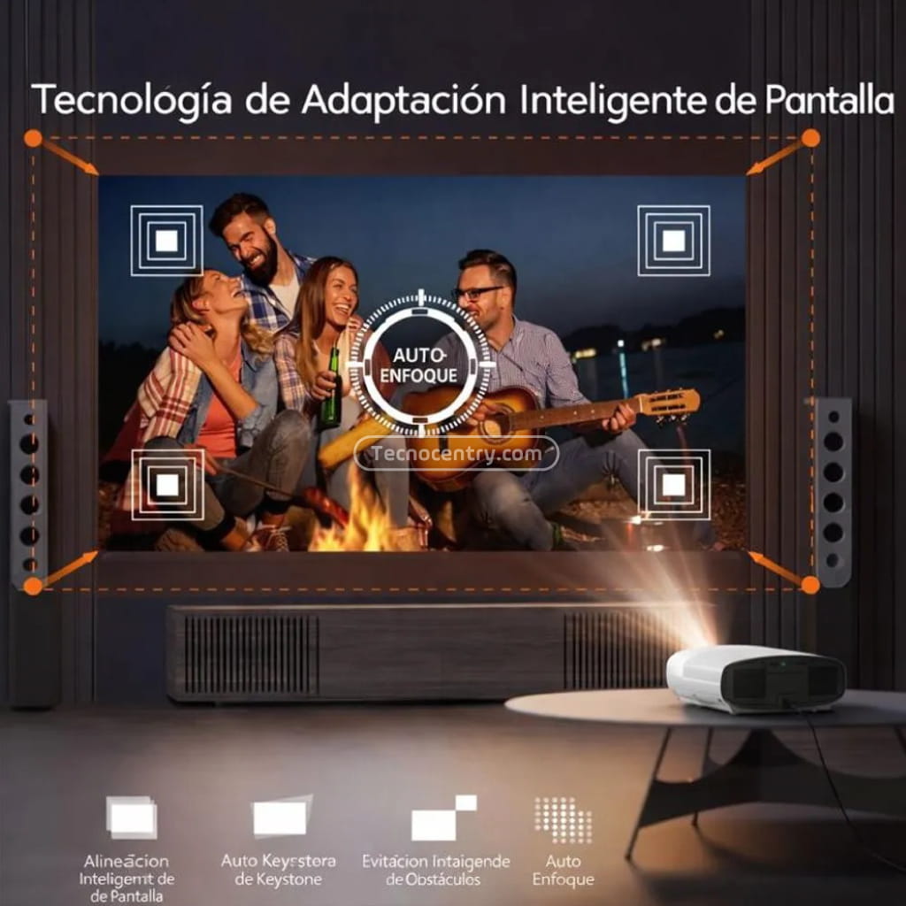 Nuestra función exclusiva: enfoque automático, corrección trapezoidal vertical/horizontal automática de ±45°, entrada automática en pantalla y detección de obstáculos. Al encenderlo, la imagen es perfectamente rectangular y nítida automáticamente, incluso al proyectar en ángulo.