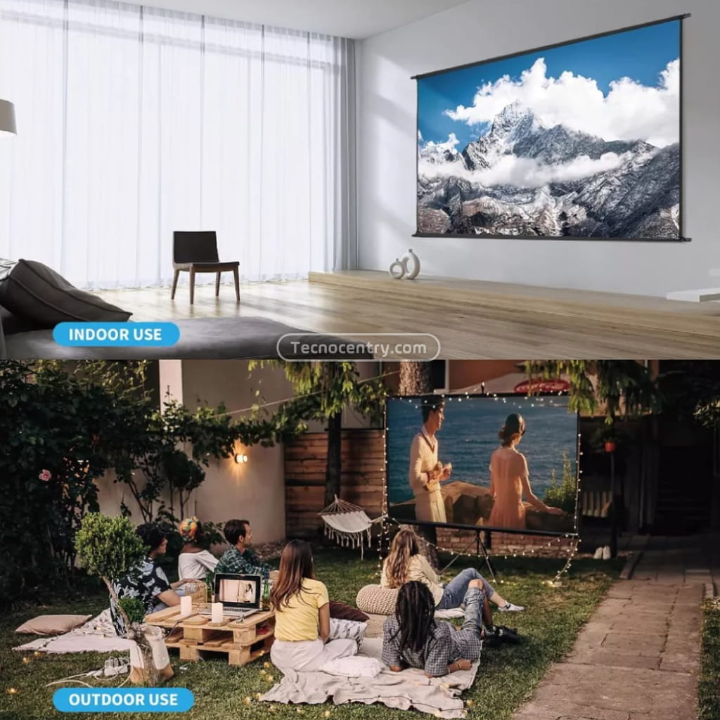 puedes poner esta pantalla de proyector en interiores, como sala de estar, oficina y aula, también puedes usarla en lugares al aire libre como jardín, patio trasero, la pantalla tiene 1.2 factores de ganancia, puedes disfrutar de las imágenes claras con tu familia o amigos todos juntos y hacer un buen entretenimiento.